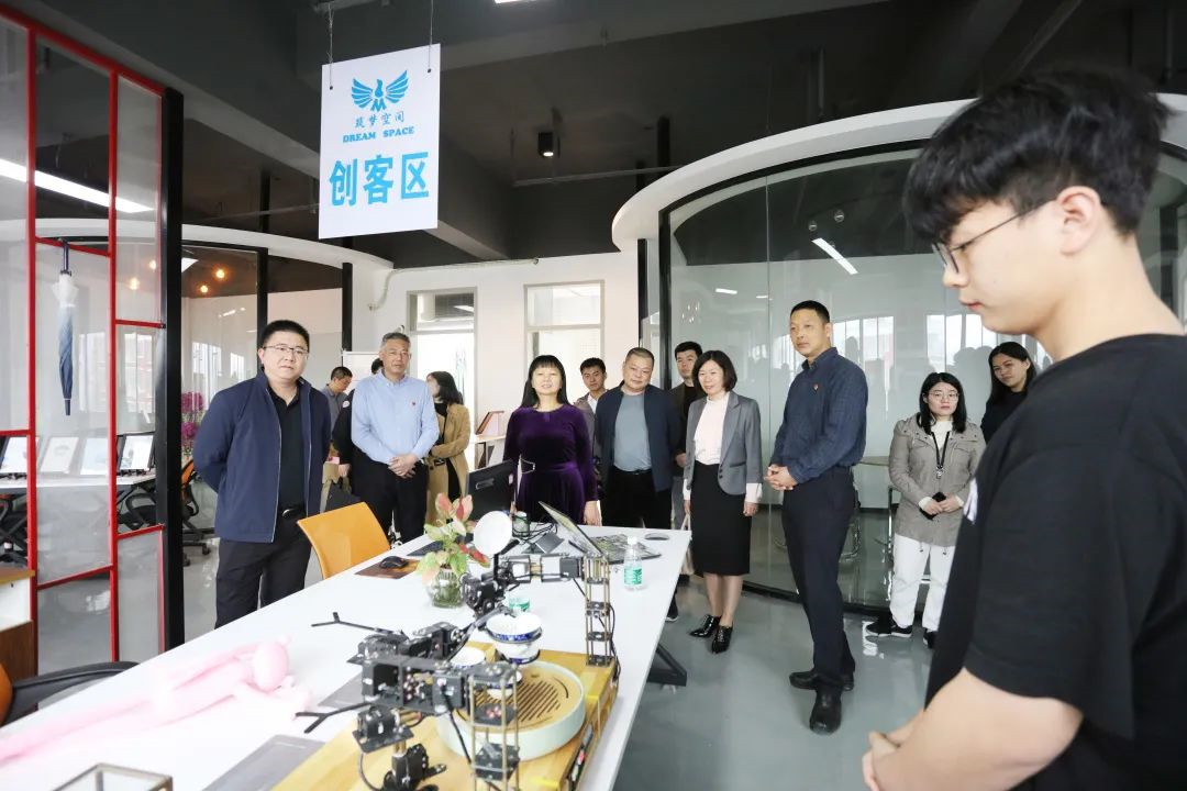 评估组一行实地考察了乐鱼网页版登录入口_乐鱼(中国)妇女微家、“筑梦空间”大学生创业园,听取学校副校长吴勇作的“筑梦空间”大学生创业园建设的工作汇报,并与园区内入驻的大学生创业项目、青年创客们进行交流,深入了解“筑梦空间”建设现状和大学生优秀创业项目运营情况。
