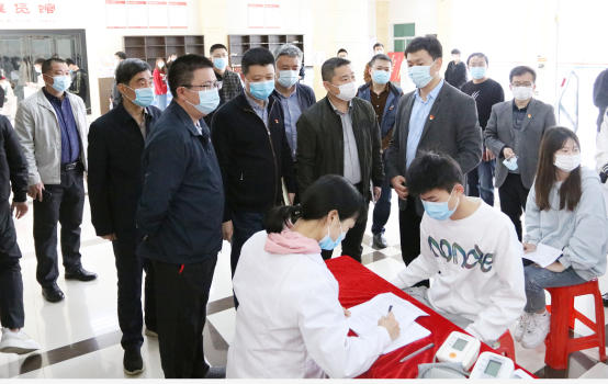 3月26日,南安市副市长周全一行莅临乐鱼网页版登录入口_乐鱼(中国)检查指导疫苗接种工作,市防控办、卫健局负责人,校领导游小波、李旭、周勇军、林树生等陪同。