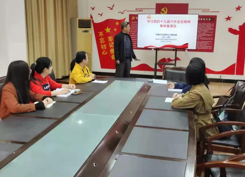 马克思主义学院将党的十九届六中全会精神列入支部党史教育学习专题学习重点,充分利用学习强国平台资源,及时学、主动学、深入学、结合实际学,将学习贯彻党的十九届六中全会精神与教书育人实际紧密结合起来,坚持学思用贯通、知信行统一,把全会精神理解透、把握好。