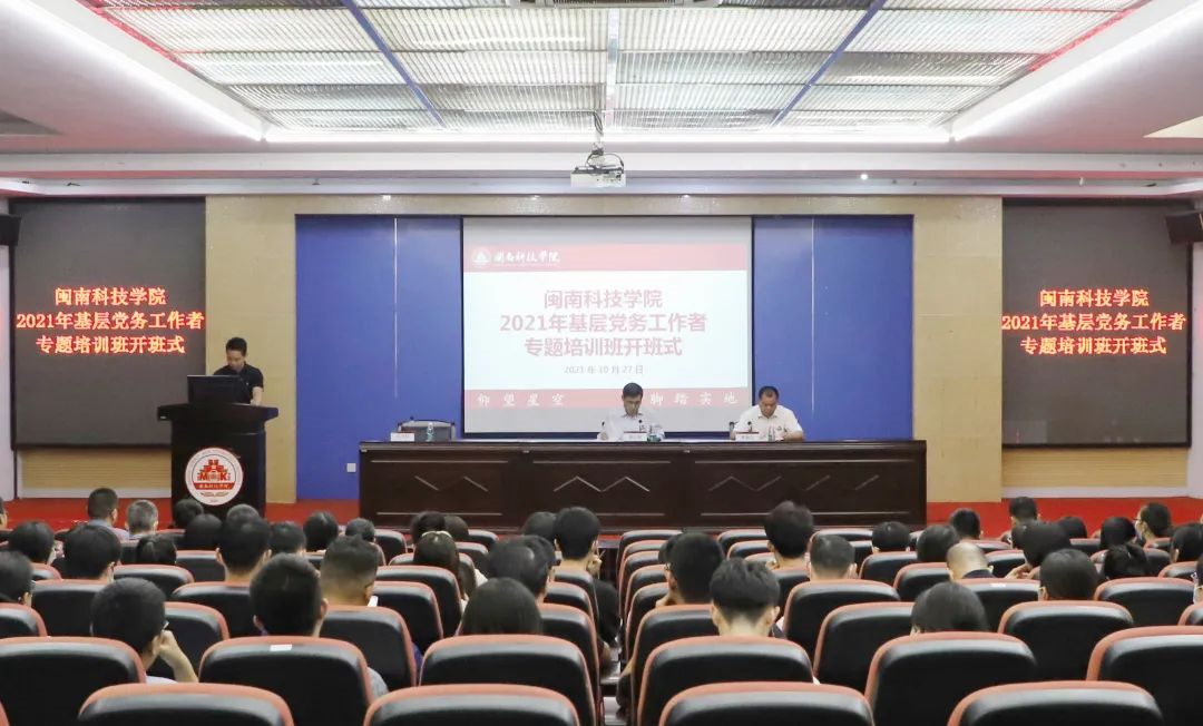 10月27日下午,乐鱼网页版登录入口_乐鱼(中国)在图书馆学术报告厅举行2021年基层党务工作者专题培训班开班式。校领导游小波、林树生出席开班式,学校各党总支委员、各党支部委员、党委部门相关工作人员和全体辅导员参加开班式。开班式由校党委委员、组织部部长庄天怀主持。