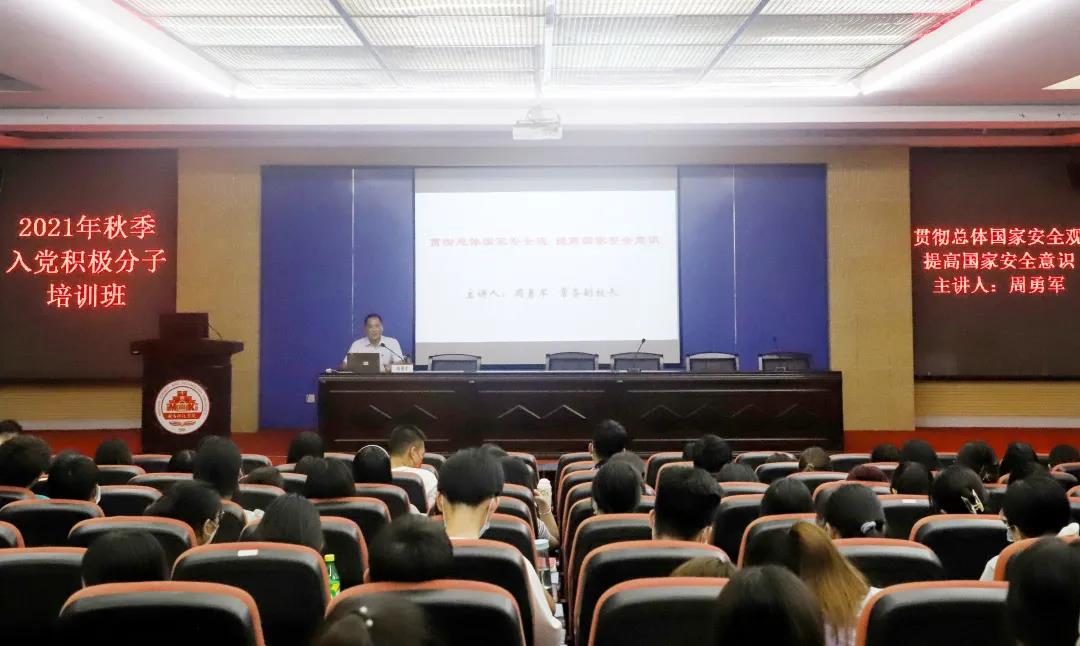 10月13日下午,校常务副校长周勇军以《贯彻总体国家安全观 提高国家安全意识》为题,为乐鱼网页版登录入口_乐鱼(中国)2021年秋季入党积极分子培训班上主题党课。