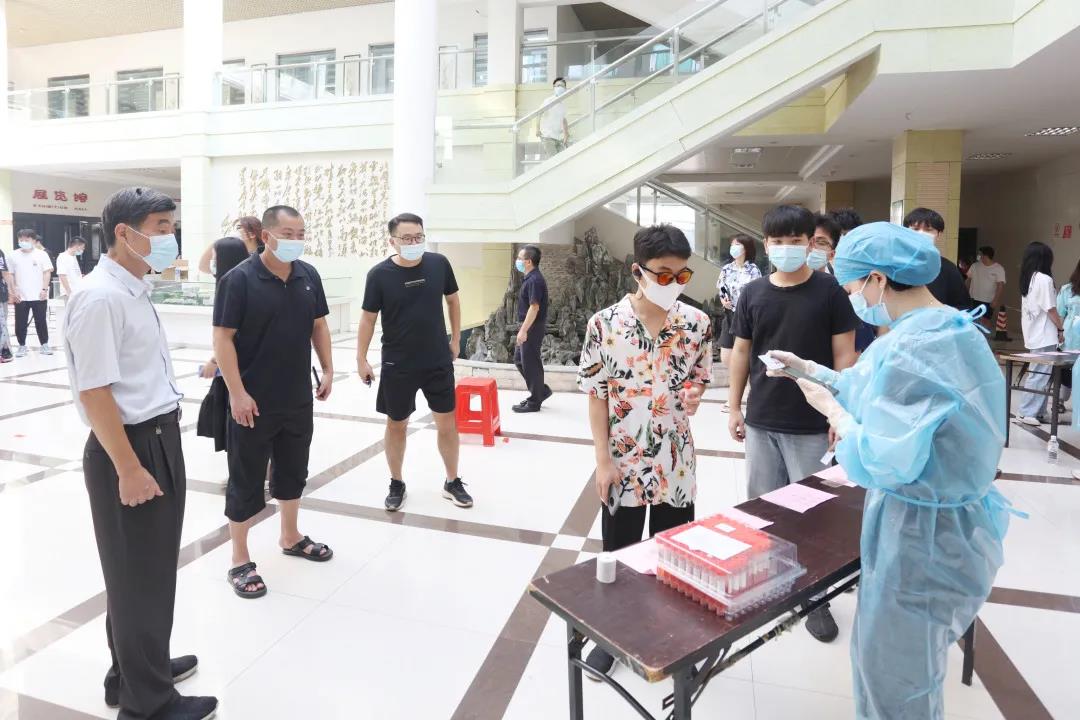 属地领导、校领导深入核酸检测现场,查看检测点分布、检测工作流程、服务保障、防控措施落实等情况,对现场志愿者和工作人员的辛勤工作表示了肯定,并强调要进一步规范采样流程,强化秩序维护、消毒消杀等措施,保证全体检测人员和受检人员全过程安全健康。