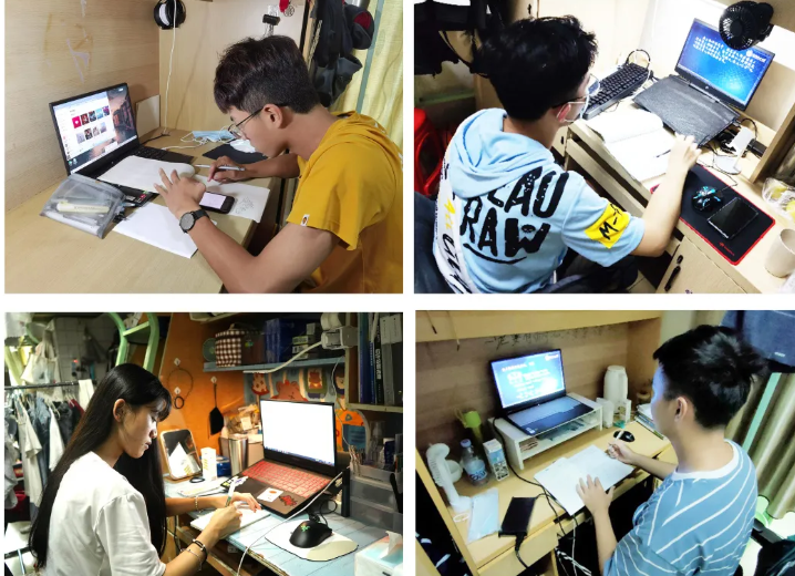 学生在宿舍进行线上学习