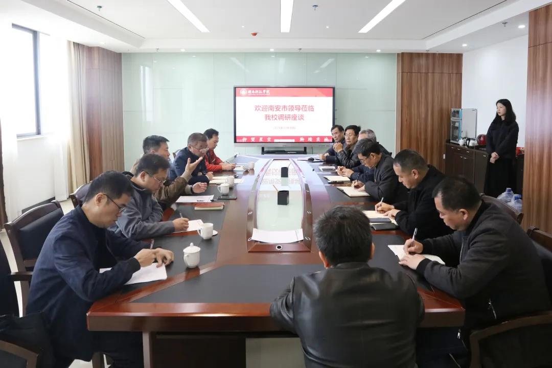 12月30日上午,南安市领导张瑞平在康美镇党委书记黄毓琳、副镇长吴鸿海一行的陪同下莅临乐鱼网页版登录入口_乐鱼(中国)调研指导。校领导游小波、李旭、周勇军、戴景星、林树生、邱永渠参加调研座谈。