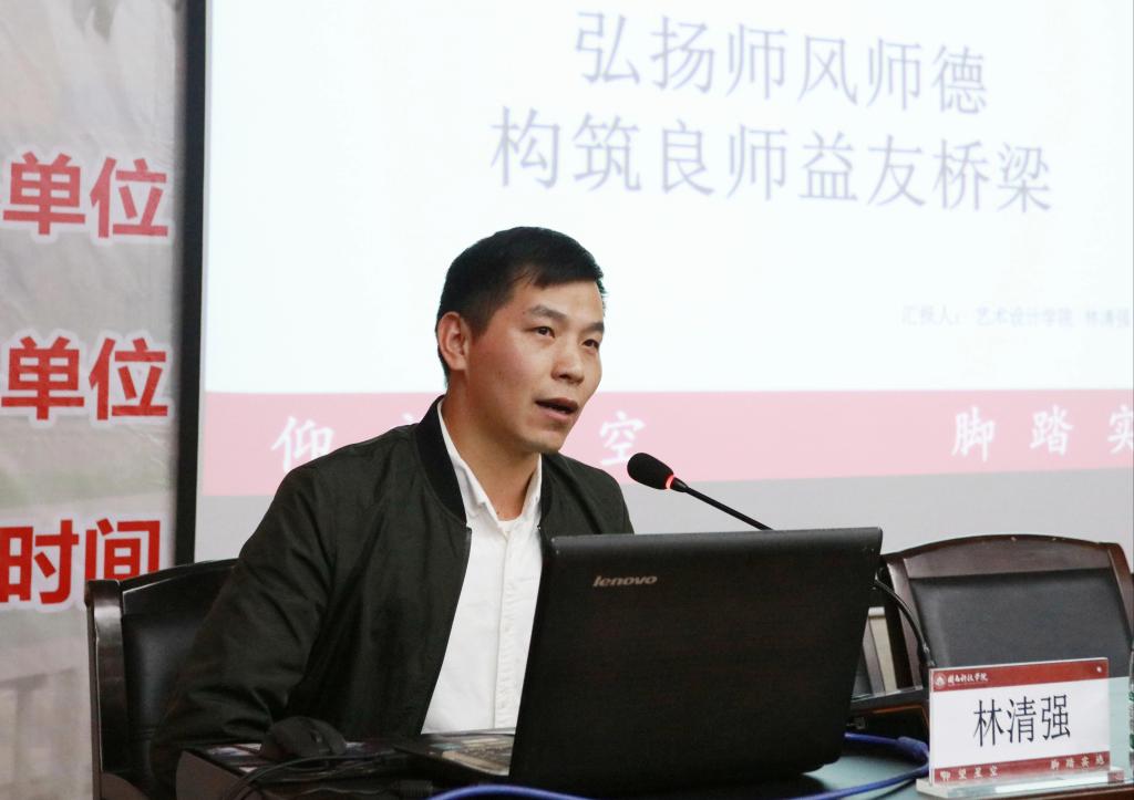 12月8日下午,校党委教师工作部举行师德师风专题讲座,邀请学校“我最喜爱的好老师”获得者、艺术设计学院青年教师林清强作题为《弘扬师德师风,构筑良师益友的“桥梁”》的专题讲座。校领导游小波、邱永渠,以及全体教职工到场聆听讲座。讲座由副校长邱永渠主持。