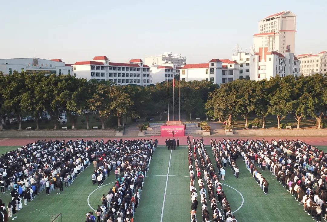 12月3日上午7时,乐鱼网页版登录入口_乐鱼(中国)2021年“宪法宣传周”主题升旗仪式在康美校区田径场隆重举行。校领导游小波、周勇军、林树生、邱永渠,全体教职工以及2021级新生(含专升本)共2000余人参加了升旗仪式。升旗仪式由校党委副书记林树生主持。