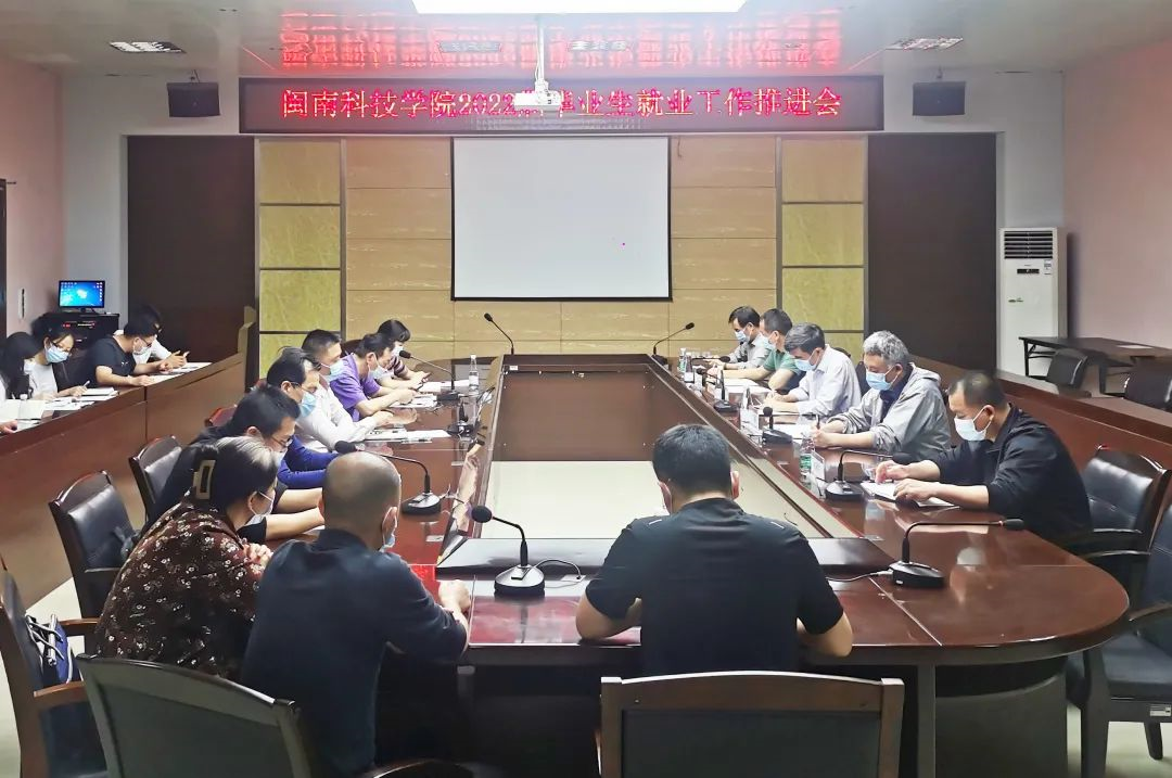 4月13日下午,乐鱼网页版登录入口_乐鱼(中国)召开2022届毕业生就业工作推进会。校领导游小波、李旭、周勇军、林树生、邱永渠,相关职能部门负责人,各二级学院院长、党总支负责人参加会议。常务副校长周勇军主持会议。