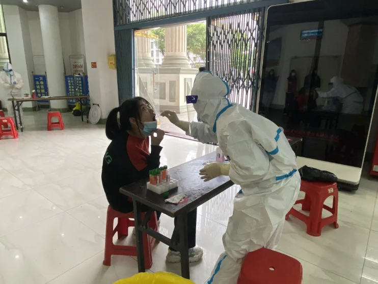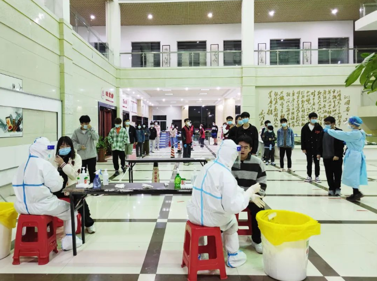 面对时间紧、任务重的情况,当天凌晨5:00,广大医护工作者和师生员工志愿者迅速集结完毕,有序开展核酸检测工作。在南安市委市政府的关心指导和大力支持下,截止上午10:00,圆满完成了住校7200余名师生员工及家属的核酸检测工作。