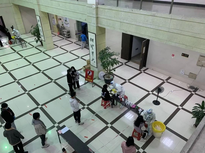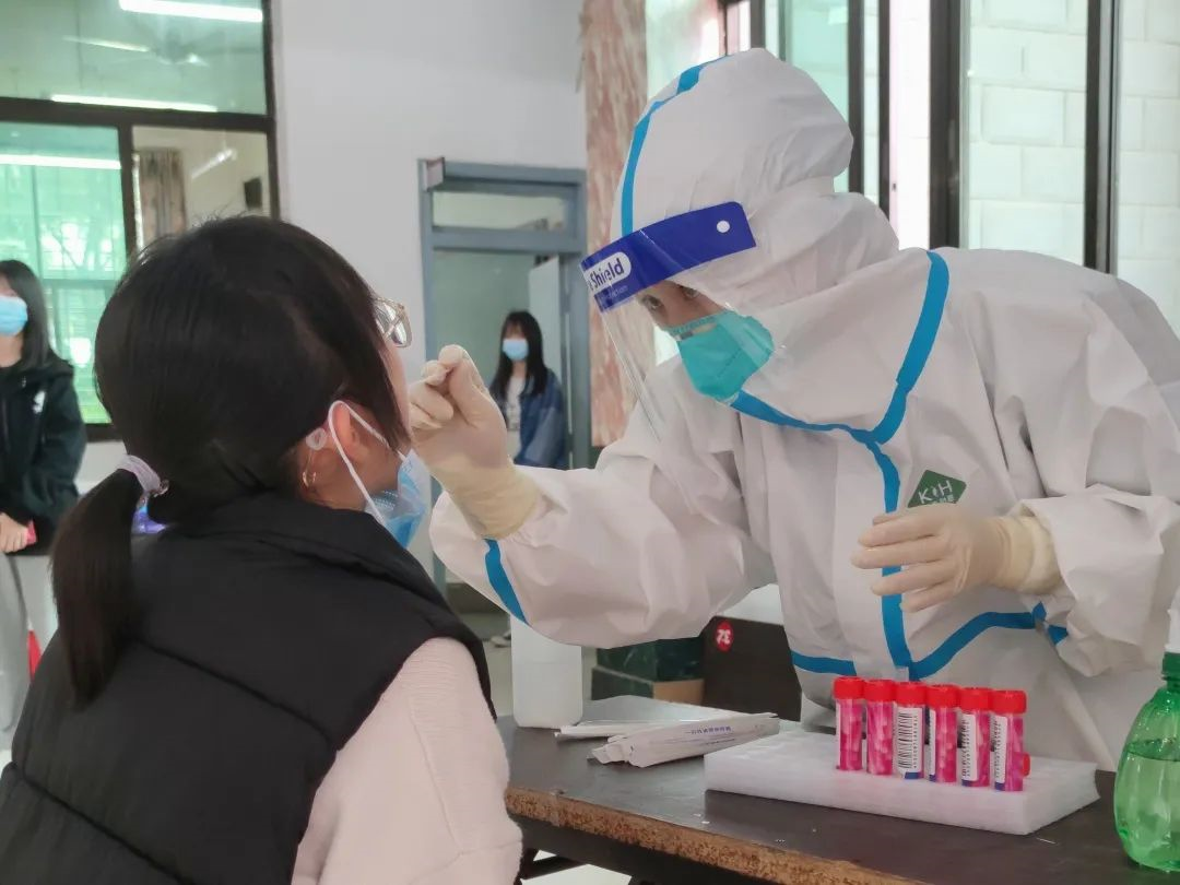 面对时间紧、任务重的情况,当天凌晨5:00,广大医护工作者和师生员工志愿者迅速集结完毕,有序开展核酸检测工作。在南安市委市政府的关心指导和大力支持下,截止上午10点20分,圆满完成了住校7200余名师生员工及家属的核酸检测工作。