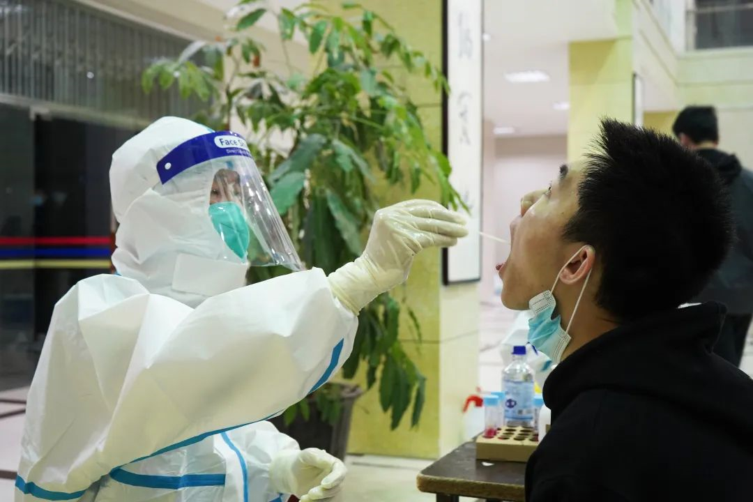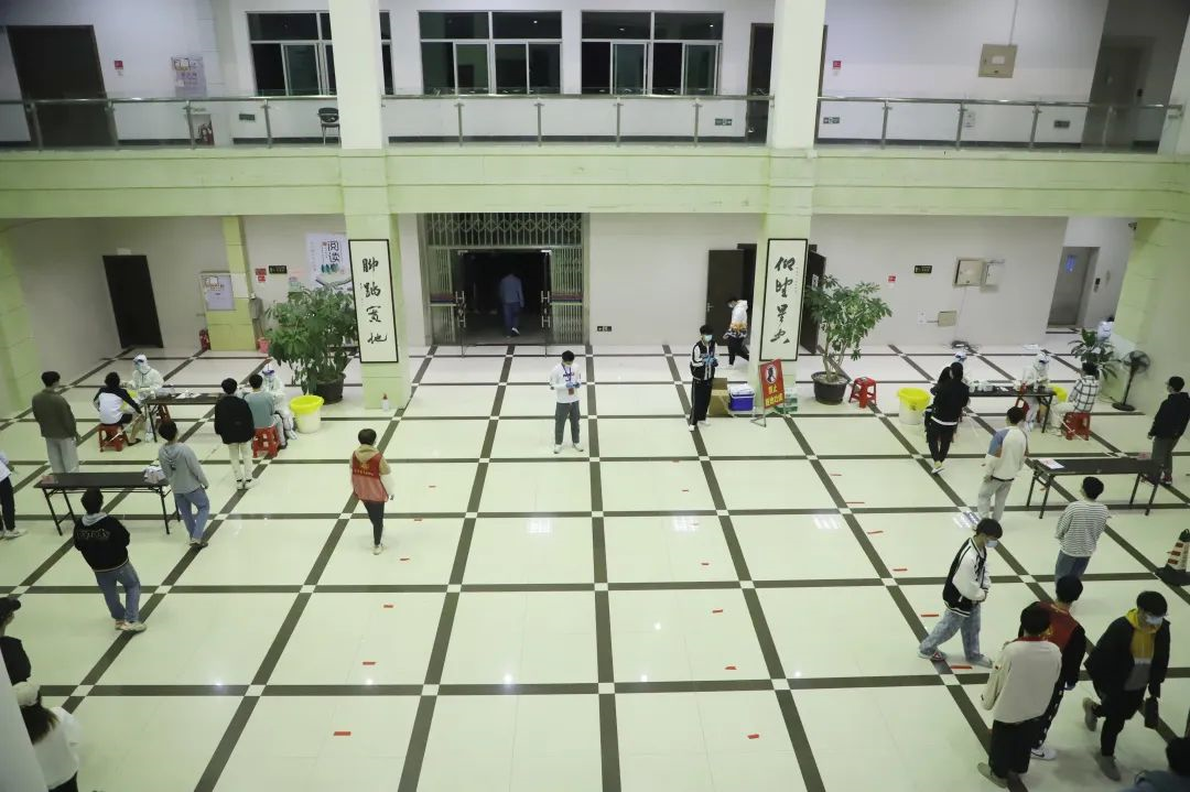 面对时间紧、任务重的情况,当天凌晨5:00,核酸检测现场已布置完成。在南安市委市政府的关心指导和大力支持下,经过广大医护工作者和全校师生员工的共同努力下,高质量地完成了集结点和检测点之间的相互衔接任务。上午10点,圆满完成了住校7200余名师生员工及家属的核酸检测工作。
