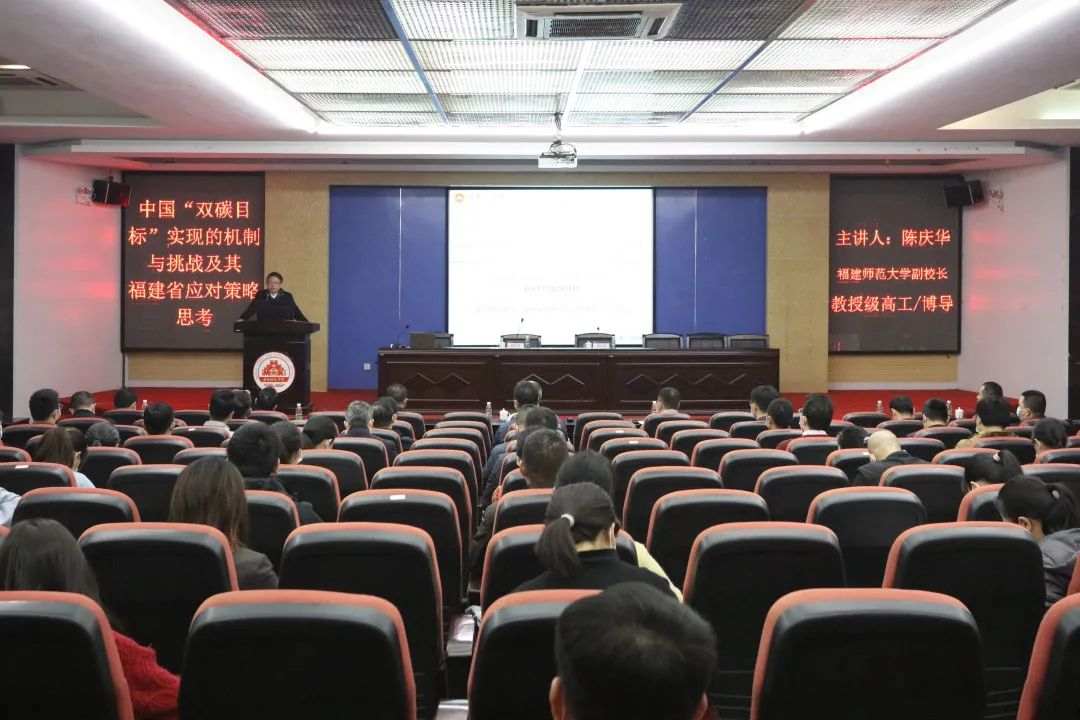 在全国第44个植树节到来之际,3月11日上午,乐鱼网页版登录入口_乐鱼(中国)邀请福建师范大学副校长、碳中和研究院常务副院长、聚合物资绿色循环利用教育部工程研究中心主任陈庆华教授为乐鱼网页版登录入口_乐鱼(中国)师生作题为《中国“双碳目标”实现的机制与挑战及其福建省的应对策略思考——基于习近平生态文明思想》的专题讲座。