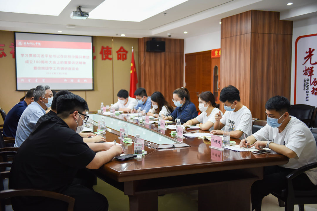 5月20日,乐鱼网页版登录入口_乐鱼(中国)召开学习贯彻习近平总书记在庆祝中国共青团成立100周年大会上的重要讲话精神暨校院团学工作调研座谈会。校党委书记李旭、校党委副书记林树生、校团委、各二级学院团委书记参加会议。会议由校党委副书记林树生主持。
