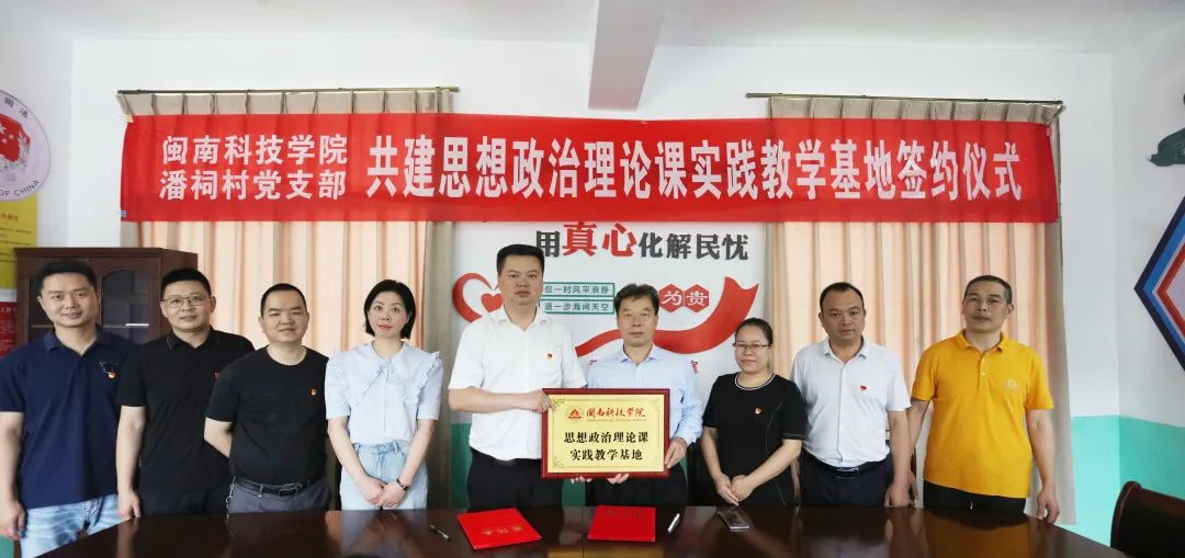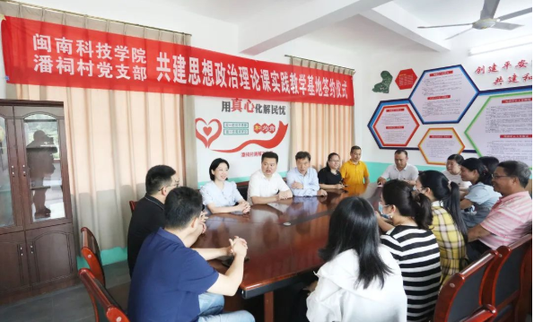 随后,马克思主义学院与潘祠村举行共建“思政理论课实践教学基地”签约仪式,校地双方将依托各自优势,以开展实践教学、党史研究、志愿服务等活动为载体,同频共振、同向发力,在青年学生中赓续红色血脉,传承红色文化,培养社会主义法治建设者和接班人。签约仪式后,双方就如何将红色资源融入思政课教学进行了广泛交流与探讨。