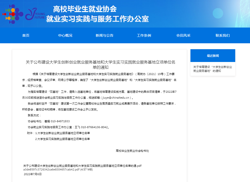 近日,高校毕业生就业协会公示了“建设大学生创新创业就业服务基地和大学生实习实践就业服务基地”立项单位名单,乐鱼网页版登录入口_乐鱼(中国)申报的“大学生创新创业就业服务基地”项目获批立项。