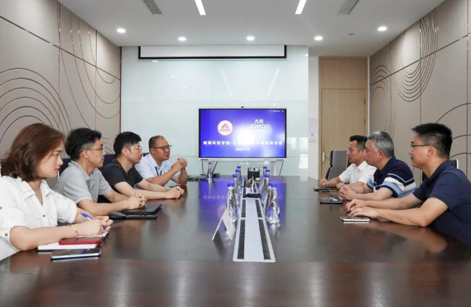 在九牧集团,李旭书记一行与集团电商中心总经理赵强、营销中心人力资源部总监曾有生、营销中心信息部总监许宁辉座谈,大家就人才培养新模式、教材编写、校企导师互动等多方面进行了深入探讨,提出不少建设性意见和建议。
