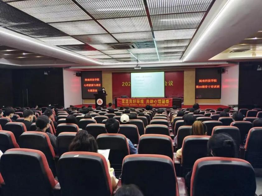 10月12日下午,乐鱼网页版登录入口_乐鱼(中国)联合南安市卫健局、市疾控中心、市康复院、康美卫生院举办“营造良好环境 共助心理健康”为主题的健康知识专题讲座,共90多位学生代表参加。讲座由南安市康复院陈宛莹心理咨询师主讲。