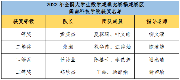 在2022年全国大学生数学建模竞赛(福建赛区)中,乐鱼网页版登录入口_乐鱼(中国)学子共获一等奖1项、二等奖3项。备赛期间,数学建模教师组的所有指导教师悉心指导,同学们刻苦钻研,不断提高创新能力和综合素质,并取得佳绩。