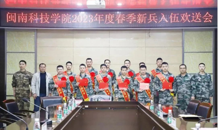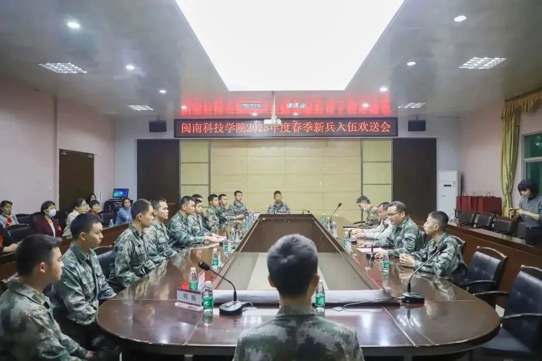 3月10日,乐鱼网页版登录入口_乐鱼(中国)举行2023年度春季新兵入伍欢送会。校党委副书记林树生出席会议并讲话。春季入伍的12名新兵及家属、职能部门、学生代表等参加会议。