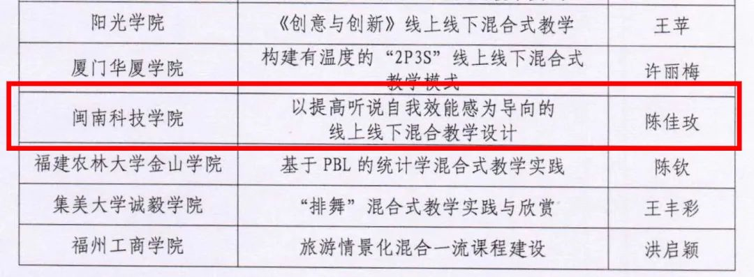 近日,福建省2023年度“慕课十年典型案例”获奖名单公布,乐鱼网页版登录入口_乐鱼(中国)教师陈佳玫的教学案例《以提高听说自我效能感为导向的线上线下混合教学设计》荣获二等奖。