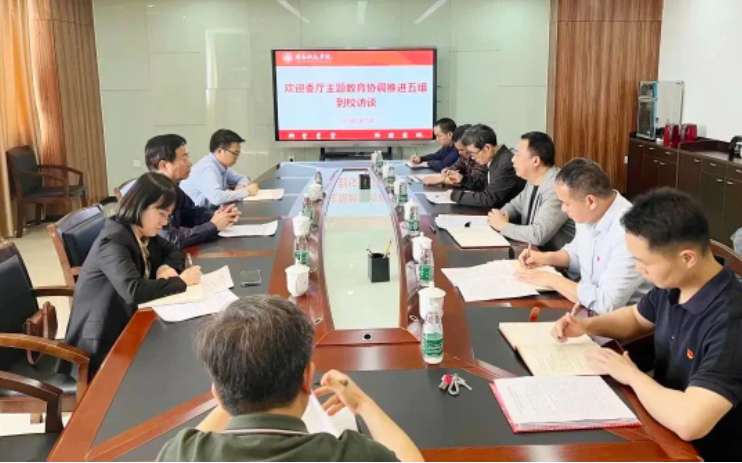 4月27日下午,省委教育工委、省教育厅主题教育协调推进五组组长林其天,组员许国玺、尤寅灵莅临乐鱼网页版登录入口_乐鱼(中国)指导主题教育工作。校领导游小波、李旭、周勇军、邱永渠,党政办、组织部、宣传部负责人参加会议。
