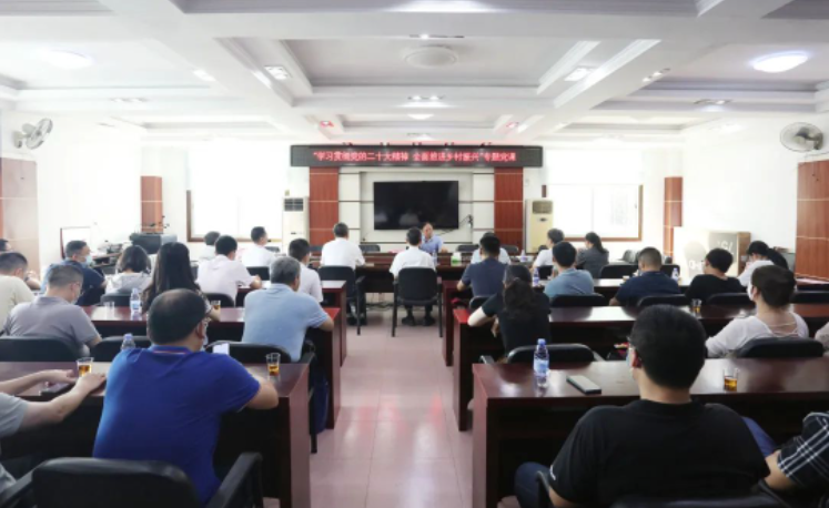 在专题党课上,党的十七大代表、十二届全国人大代表、中国乡村发展志愿服务促进会副会长、蓉中村党委第一书记李振生以《学习贯彻党的二十大精神 全面推进乡村振兴》为题,围绕党的二十大报告“在中国式现代化进程中全面推进乡村振兴”章节,结合自身参与蓉中村乡村振兴建设、基层党组织建设、脱贫致富等故事,畅谈蓉中村借鉴新时代“枫桥经验”在打造乡村治理多元机制、完善基础治理、畅通诉求渠道、构建共建共治共享格局等强化安全管理方面的特色做法,以及在全国脱贫攻坚战中,他身先士卒,参与村级脱贫攻坚战的典型经验。