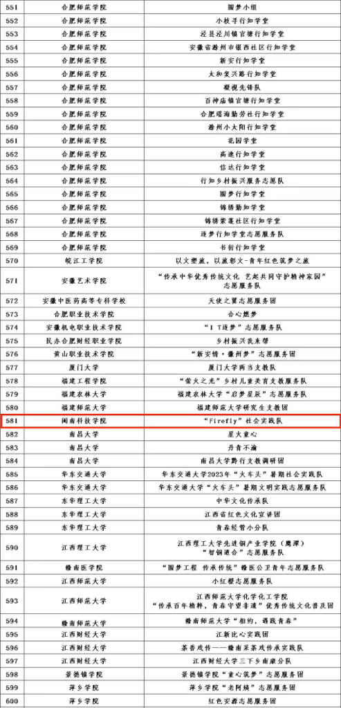 2023年全国大学生“乡村振兴”志愿服务项目入选团队名单
