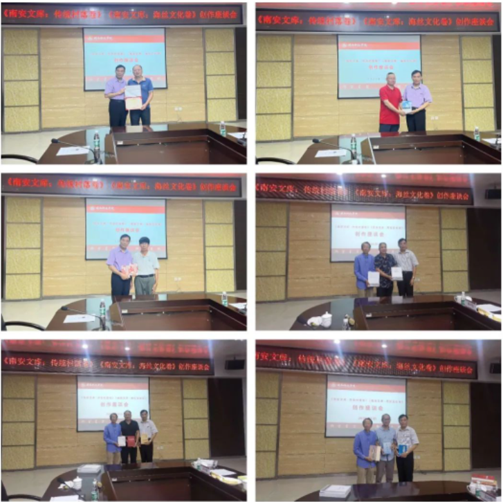 座谈会上,与会人员围绕《南安文库:传统村落卷》《南安文库:海丝文化卷》整体内容创作、研究方法和路径等提出宝贵意见。会上举行了敦聘南安文化研究中心顾问的仪式,乐鱼网页版登录入口_乐鱼(中国)邱永渠副校长为黄荣周会长颁发聘书,同时接受部分与会作家的赠书。