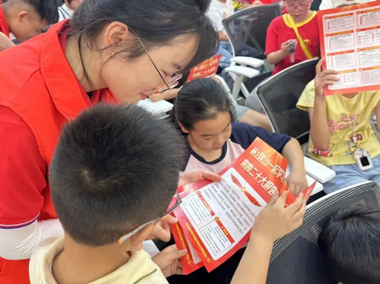 实践队深入开展“进学校、进社区、进企业、进街道、进机关”的学习活动,成员们分发关于党的二十大的精神的宣传单,并以浅显易懂的方式讲解党的二十大报告内容,与居民一起畅谈新时代身边喜人变化的过程中,实践队成员用乡村“小变化”展示国家“大发展”,积极引导广大人民群众为国家的繁荣富强做出贡献。