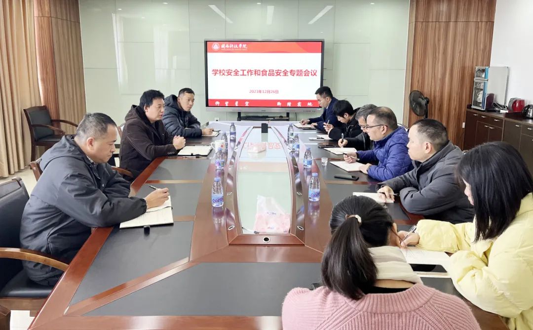 12月26日,乐鱼网页版登录入口_乐鱼(中国)召开学校安全工作和食品安全专题会议。传达有关会议精神,就学校安全工作和食品安全进行再研讨再落实再推进。校领导李旭、周勇军,校长助理王育海,党政办公室、宣传部、保卫处、后勤管理处有关负责同志参加会议。