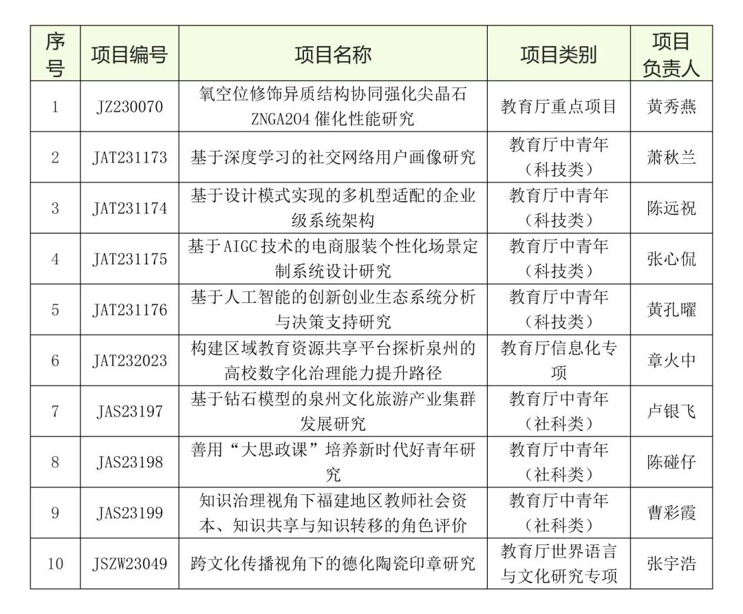 近日,福建省教育厅公布了2023年度福建省教育系统哲学社会科学研究有关项目立项名单、2023年度福建省中青年教师教育科研项目(科技类)立项名单,乐鱼网页版登录入口_乐鱼(中国)共有10项课题获批立项。