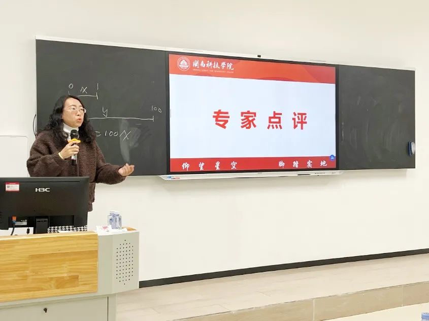 泉州师范学院教育科学学院副院长、省教学创新大赛二等奖获得者邵华教授对比赛做了总结点评。她对各位青年教师的教学创新和综合表现给予充分肯定,并就选手备战新一届的福建省高校教师教学创新大赛提出了很多宝贵的建议。
