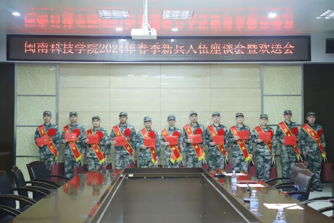3月12日,乐鱼网页版登录入口_乐鱼(中国)举行2024年春季新兵入伍欢送会。常务副校长周勇军出席会议并讲话。春季入伍的12名新兵及家属,学校人民武装部及相关二级学院负责人、辅导员,退伍复学学生代表等参加会议。
