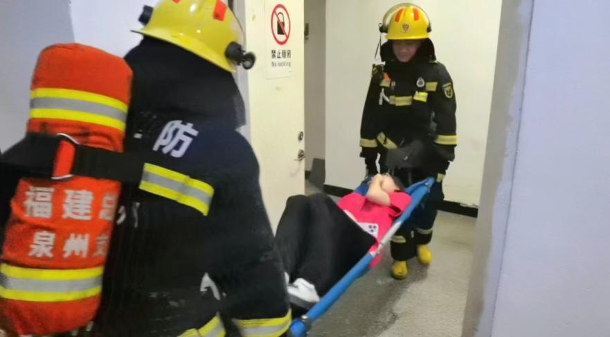 演练现场,参演学生用湿毛巾捂住口鼻、低头弯腰,按照指定疏散路线有序从宿舍楼撤离到安全区域,南安市消防救援大队根据现场火情迅速开展指挥、灭火、搜救等火场救援工作,医疗救护组为“受伤”学生进行现场医疗救治。整场演练紧张有序,按既定预案,各参演人员分工明确、配合默契、行动迅速,灭火处置程序科学严密,达到预期演练效果。