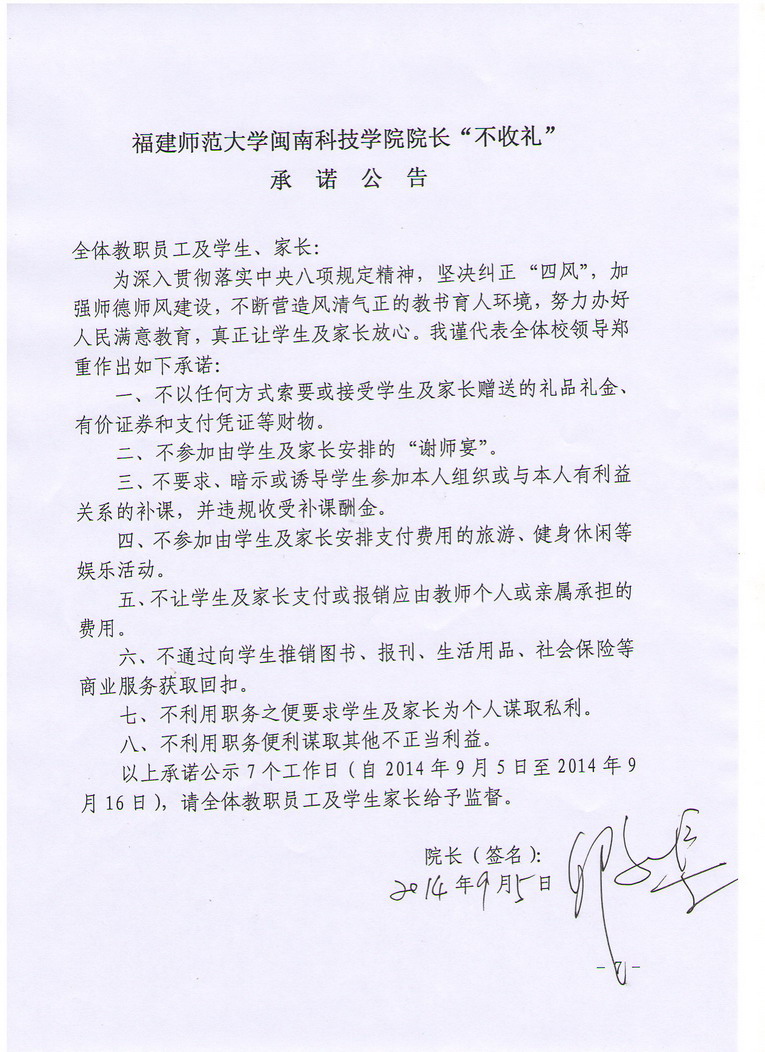 福建师范大学乐鱼网页版登录入口_乐鱼(中国)院长“不收礼”承诺公告